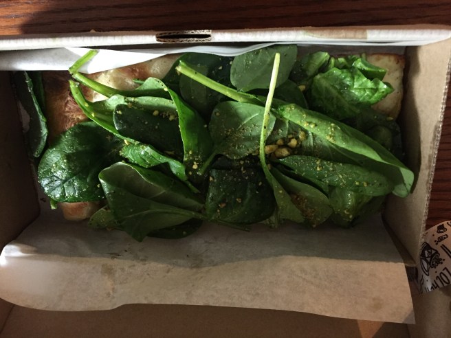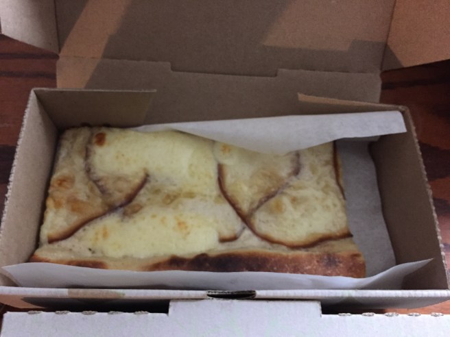 Next up was pizza as I again needed to grab and go. It was towards the end of the night so I didn’t have to contend with the lines I’d become accustomed to every lunch break so this visit started out promising. I ordered both The Butcher (tomato sauce, soppressata, mortadella, prosciutto, mozzarella) and the Cheesy (bechamel, cheese curd, grana padano, smoked caciocavallo). Of the two the Cheesy was my favorite. The unique blend of cheeses lent a certain depth to the slice. I loved the crust for both pizzas but it was not as tasty cold as some slices I’ve had and did not re-heat super well.