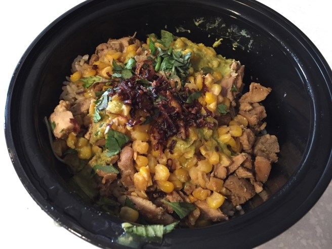 My yum-yum bowl containing brown rice, lemongrass chicken, charred miso butter corn and green curry with cilantro + thai basil and fried shallots was enjoyable. I was expecting a bit more flavor from all the toppings I selected and for it to be a little less dry. Reminded me of an Asian version of Chipotle’s bowl (which I also think is overrated but whatevs).