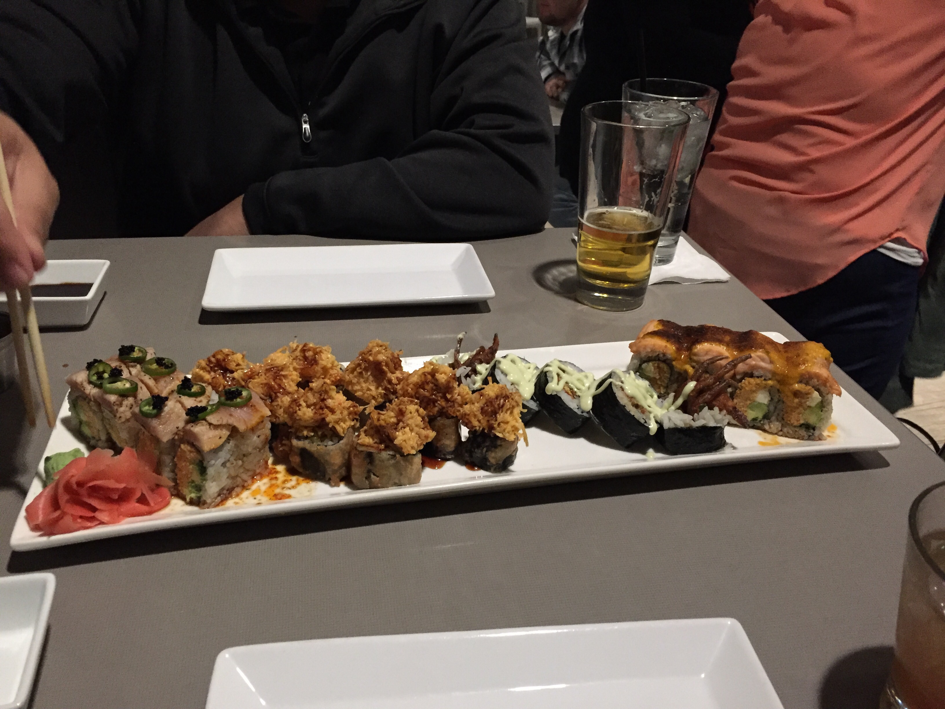 The Philly Bomb I tried was good – great presentation, fresh and made quickly. It’s an interesting experience to watch the sushi chefs making various rolls as passer byers look on in amusement or puzzlement.